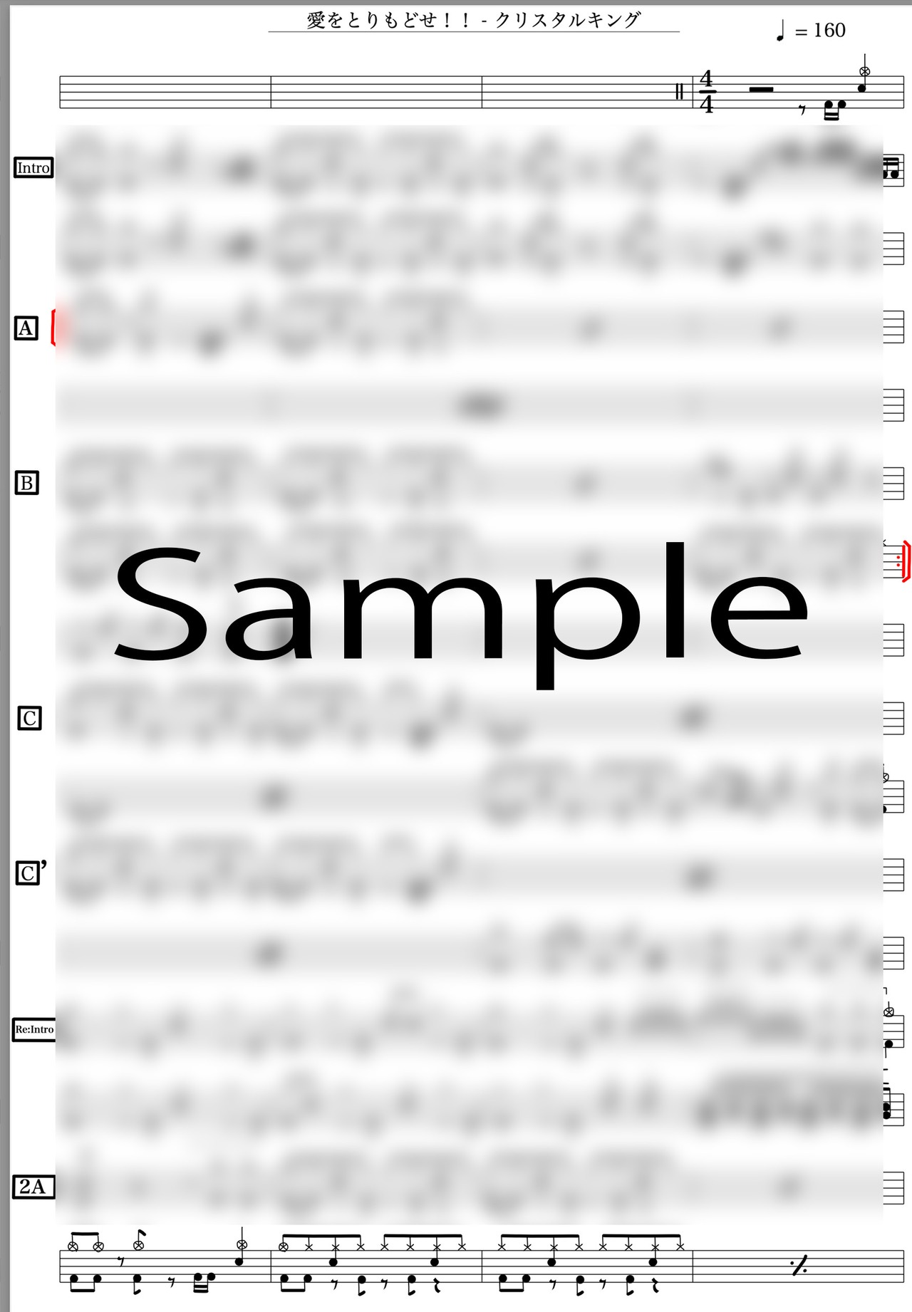 【クリスタルキング】愛をとりもどせ!! ドラム譜面・楽譜・スコア・drum score | keiji masuoka drum score