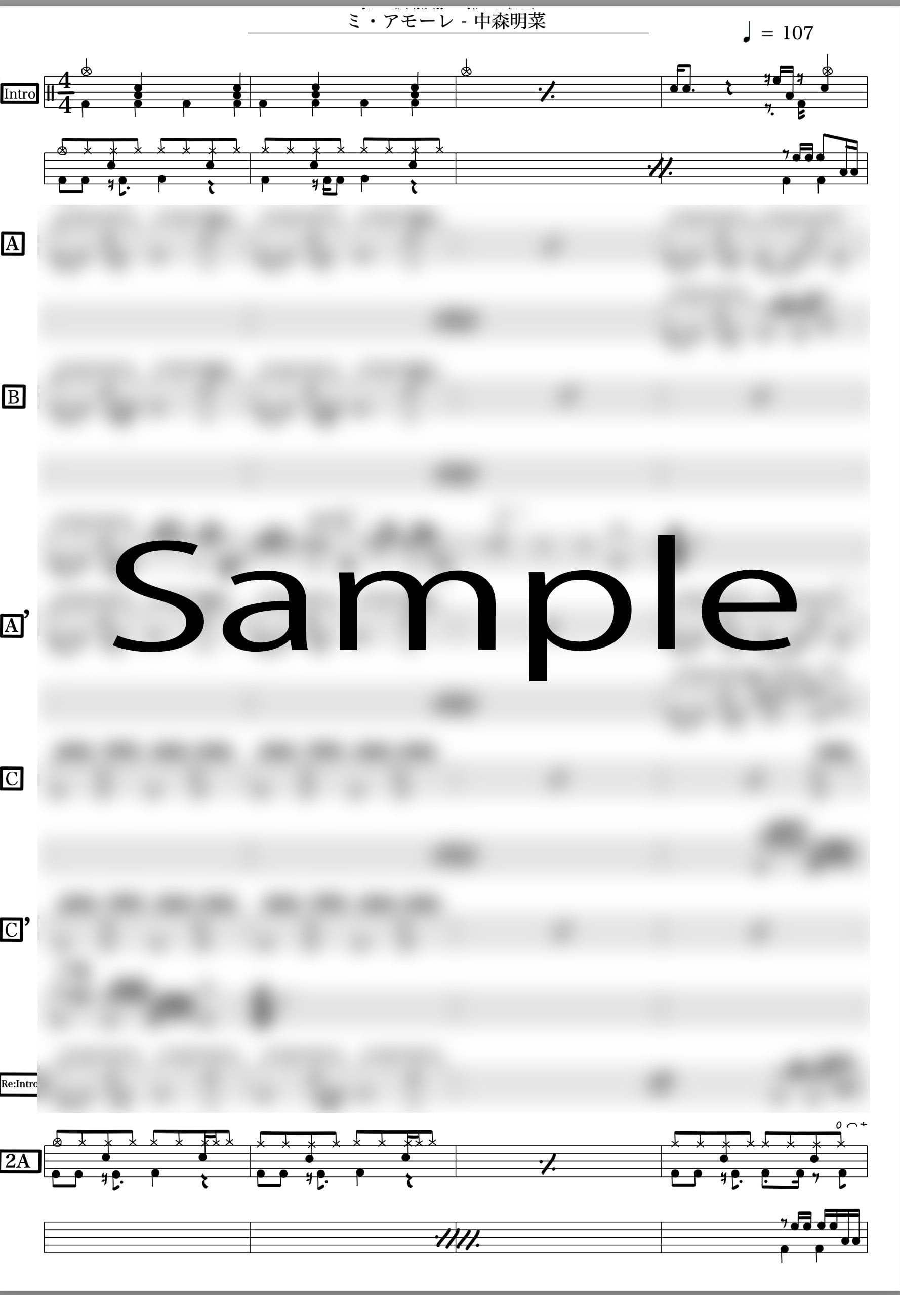 【中森明菜】ミ・アモーレ ドラム譜面・楽譜・スコア・drum score | keiji masuoka drum score